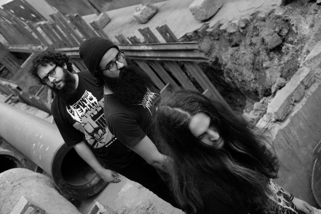 Para além das composições, existe no sludge uma proposta sensorial em relação aos timbres que definem o estado de humor do estilo. Tudo é posto de uma forma arenosa e com uma densidade altamente grave. O Finis Hominis, formado por Mega (baixo e voz), Vitu (guitarra e voz) e João Paulo (bateria), é um ótimo representante desse cenário e In Sole Putridum, registro mais recente do trio, explora o peso em sua sonoridade como um veículo para um conteúdo calcado em mensagens raivosas, urgentes e necessárias (leia aqui o texto que explica a capa do EP). As quatro faixas têm, além da porosidade e cadência do sludge, uma proximidade com o doom e, em alguns momentos, com o death metal em sua vertente mais primal.